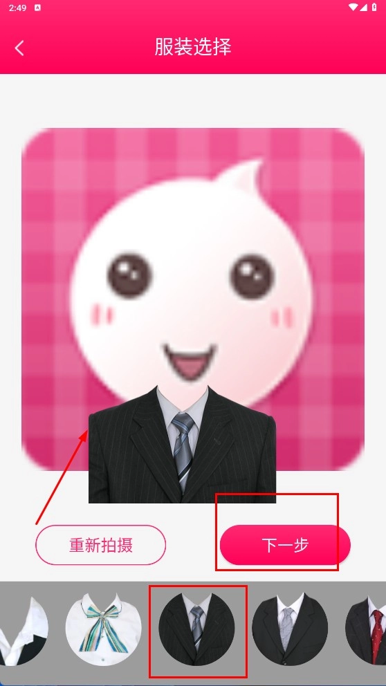 4、在服装选择界面,挑选合适的服装样式,点击【下一步】,继续证件照制作流程。