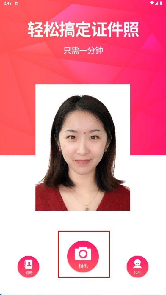 1、点击【相机】按钮,进入证件照拍摄流程,准备拍摄证件照。