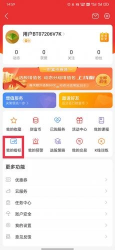 2、在“我的”页面的中间选择“我的指标”图标;