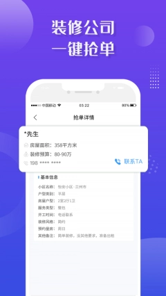 这款装修接单平台聚焦业主的装修需求对接,能匹配设计师、施工负责人、主材供应商等各类服务方。服务人员完成平台注册认证后,可依据系统规则和客户具体需求承接订单;获取业主需求详情后,能快速建立沟通,提供装修全流程相关服务支持。