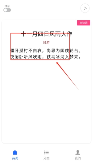 2、在进入后,点击诗词选项查看详细注释和赏析内容,帮助更好地理解诗词的意境与内涵。