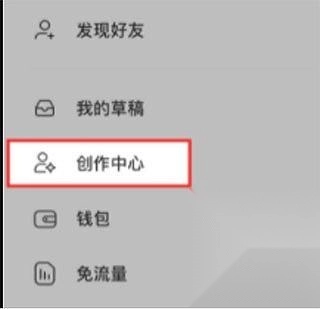 4.在弹出来的内容里,点击“创作中心”