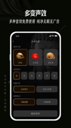 1平台为用户配备了专业的诵经木鱼,用户能跟随木鱼的敲击声,迅速放松身心,同时平台还免费提供多种音效,用户可依据自身喜好进行选择。