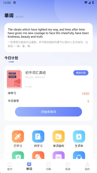 2、在单词页面里,可依据不同的计划快速背单词,并了解各计划的详细情况;