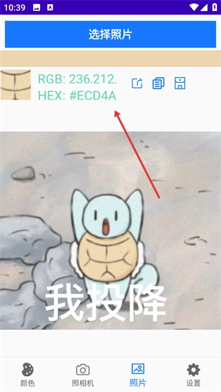 2、图片取色:用户可从相册中选择图片进行取色,轻松提取图片中的任意颜色。