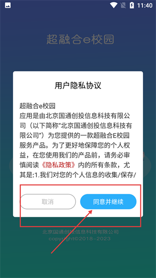 1、进入应用后会弹出【用户隐私协议】弹窗,阅读《隐私政策》条款后点击【同意并继续】,即可进入应用引导页面。