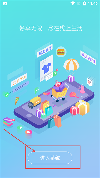 2、在引导页面点击【进入系统】按钮,可跳转至登录界面,该应用是校园服务类产品,需通过校园账号登录。