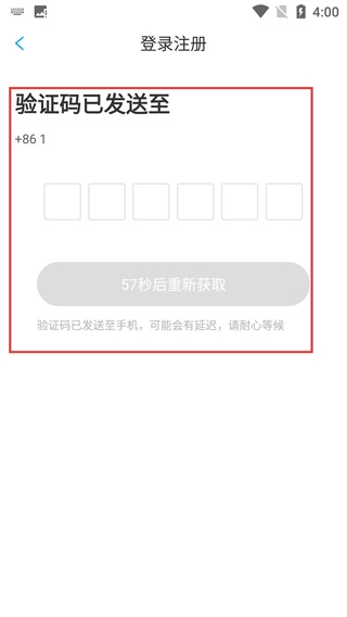 4、验证码发送后,在对应页面输入6位验证码,即可完成账号验证,成功登录应用。