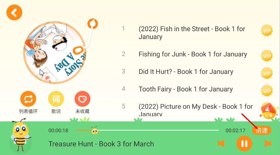 1、打开安妮花绘本阅读馆,在首页“学习乐园”中点击文章《The Story a Day》进入阅读页面。