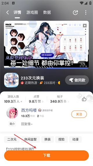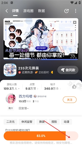 3、在【233次元换装】的详情页面,点击底部的【】按钮,即可启动该游戏的流程。