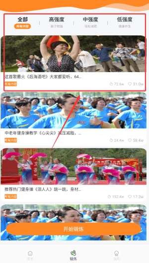 2、课程资源库覆盖燃脂塑形、力量训练等多个领域,所有教学视频均免费开放,并且会定期更新内容。