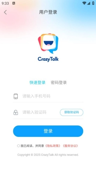 4、提供快速登录和密码登录两种方式,方便大家自主选择登录并开启口语练习。