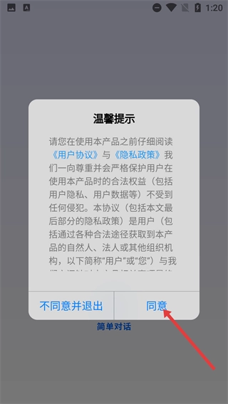 1、仔细阅读《用户协议》和《隐私政策》,点击【同意】按钮后,即可进入登录界面。