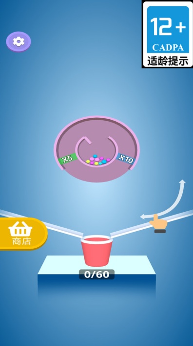 当杯子中的小球数量累积到40个即可达成满分通关,集齐三颗星星则能直接开启下一关。此外,若朝着特定的×5方向倾斜杯子,小球数量会瞬间变为原来的5倍,从而更高效地完成通关任务。