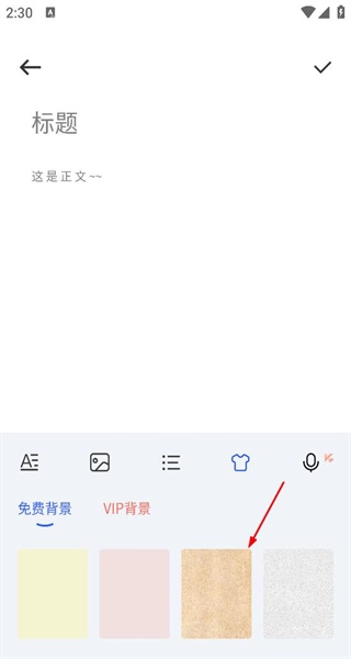 打开软件进入文档编辑界面后,可选择免费背景里的米色背景,此外界面也提供VIP背景供选择。