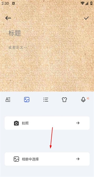 2、点击图片添加功能后,可选择从相册中选取图片,界面同时提供拍照选项,大家可根据实际需求选择图片来源完成添加操作。
