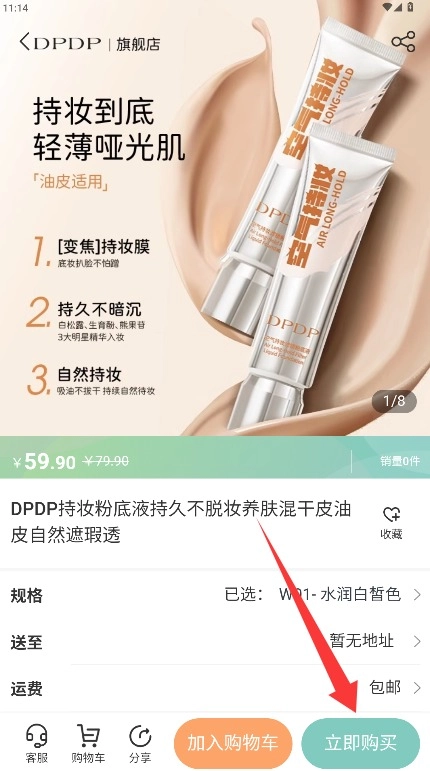 4、进入商品详细信息界面后,点击页面右下角立即购买按钮即可完成购买流程。
