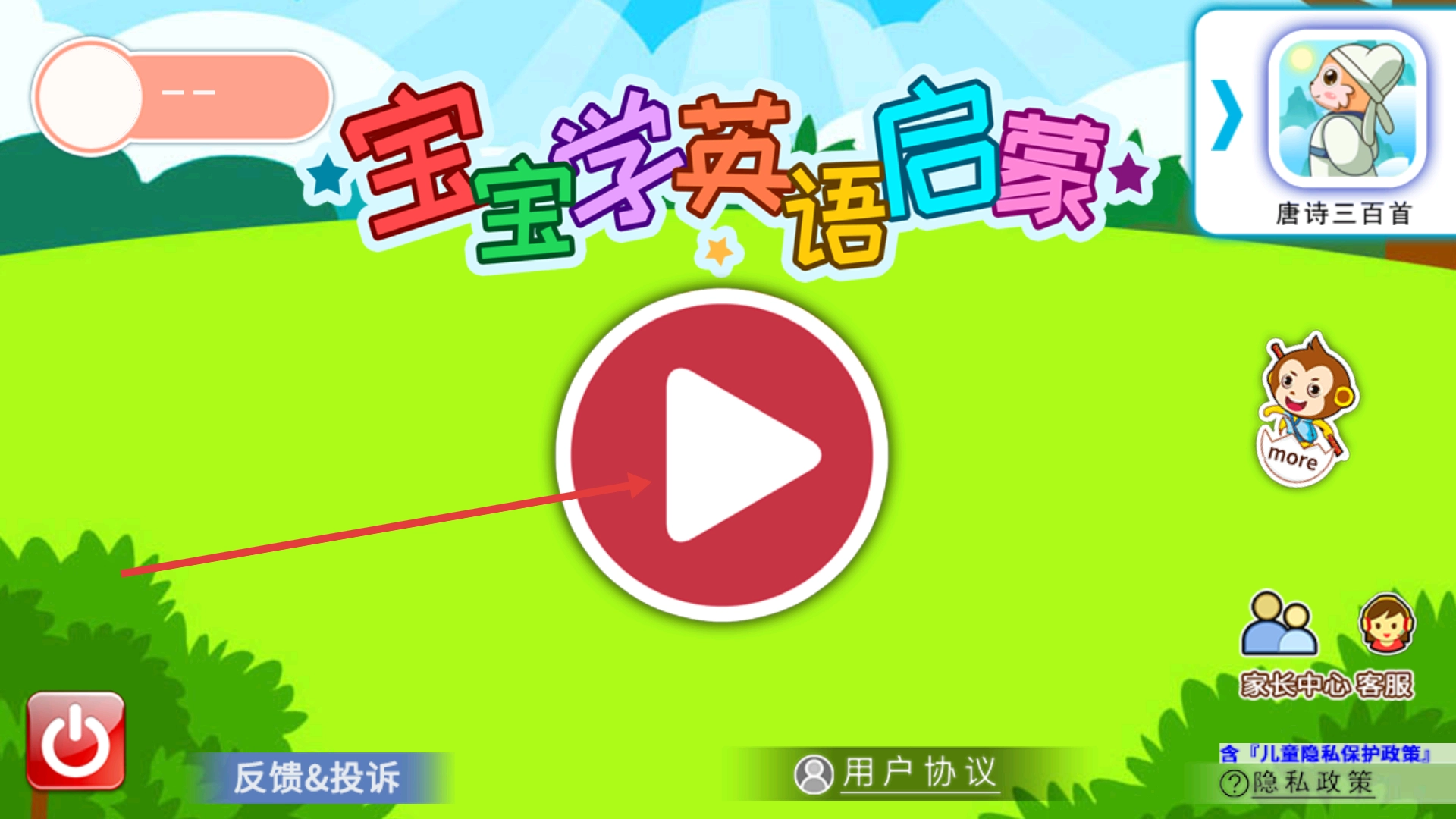1、点击红色播放按钮,进入英语学习选择页面。