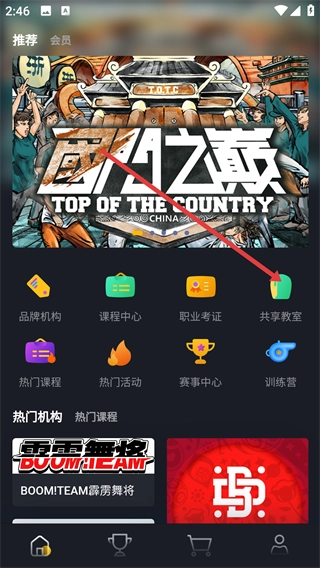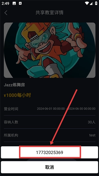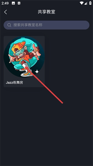 2、在共享教室页面,可选择如【Jazz练舞房】等共享教室选项,进入其详情页面。