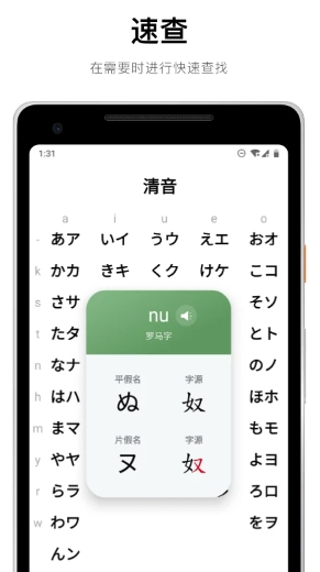 2、快速查询 快速查询表能让你在有需要时,迅速找到想要了解的假名、日期以及数字。
