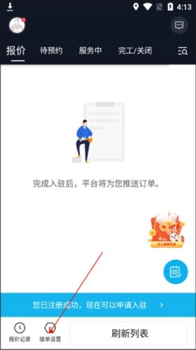 1、打开,点击接单设置。