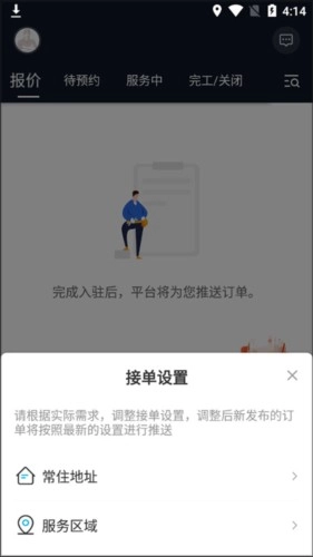 1、在线接单:平台每日单源稳定且充足,师傅们随时能通过平台接取订单。