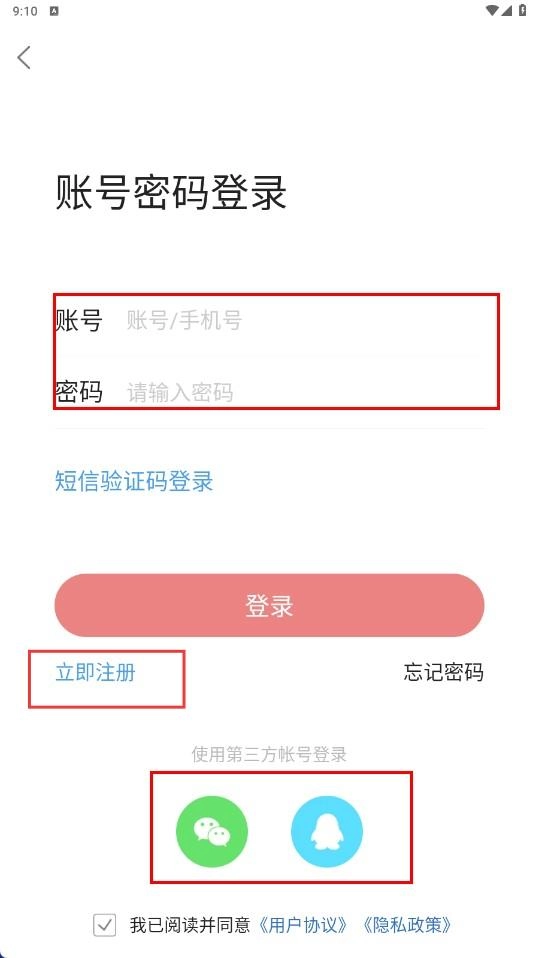 在登录页面,用户可以通过输入账号密码进行登录,也可以选择点击【立即注册】按钮,或者使用第三方账号(例如微信、QQ)完成登录操作。