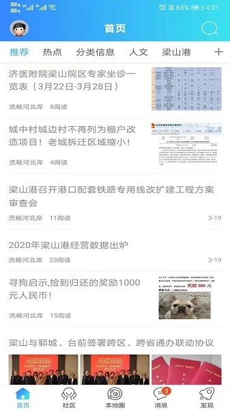 网上梁山是一款梁山本地综合性服务平台,在这里可以看到最新的梁山相关资讯,为用户提供各种各样的资讯文章,通过阅读文章就可以了解各个方面发展的情况,了解梁山,也可以本地同城爆料的动态信息,通过附近用户爆料的情况,在第一时间就知道了各个地区发展的大事小事,让你更加了解梁山,知道每天发展的重大事情。也有最齐全的便民服务信息,轻松在线里了解本地圈提供的服务,知道同城服务提供服务的情况,在日常的生活中可以轻松查看和选择,让生活更加便捷。
