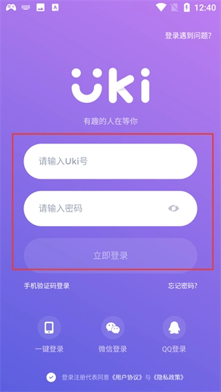3、若选择密码登录方式,需先在【请输入Uki号】的输入框中填写账号,接着在【请输入密码】的输入框内填写对应的密码,完成后点击【立即登录】按钮,即可进行登录尝试。