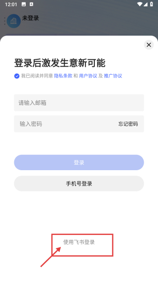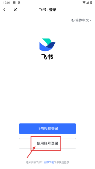 3在飞书的登录入口页,选择账号登录的方式,即可进入对应的登录界面。
