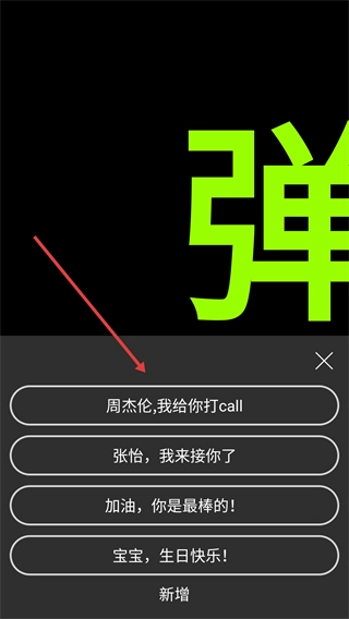 2、在模板页面选定目标弹幕内容(例如“周杰伦,我给你打call”),即可触发操作选项弹窗。