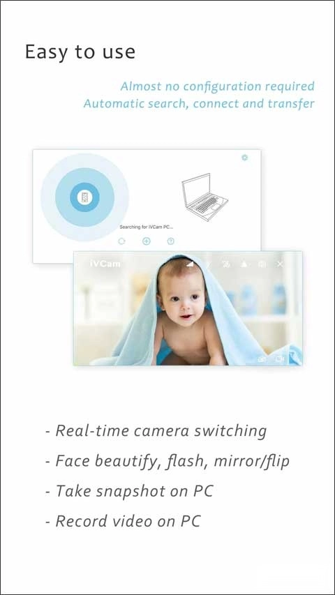 iVCam是一款能把手机变作电脑摄像头的软件。借助iVCam安卓版,可实现手机摄像头与电脑的配对,只需简单操作,就能把手机画面投射到电脑屏幕上。iVCam支持视频录制,还能实时调整分辨率、饱和度、亮度等参数,不管是视频会议、线上教学,还是家庭监控场景,iVCam都能轻松胜任!