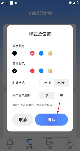 2、打开桌面悬浮时钟界面,能看到当前时间和倒计时的展示,点击样式及设置按钮,即可进入样式设置弹窗。