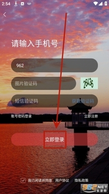 3勾选用户协议后,输入手机号验证码并点击【立即登录】按钮即可完成操作。