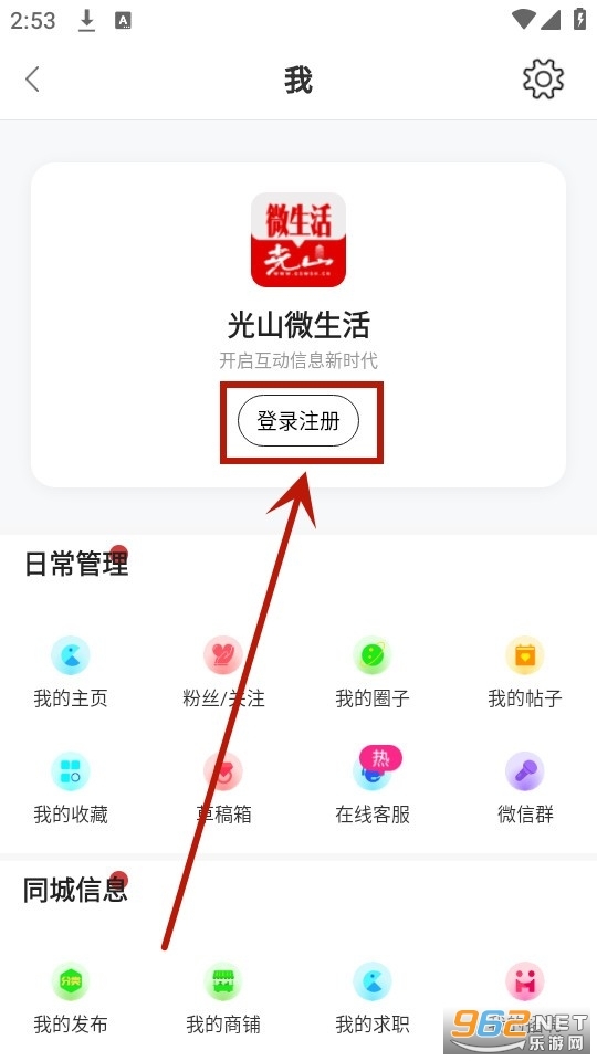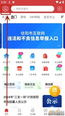 1首先完成光山微生活的安装并启动应用,进入主界面后,找到页面左上角的人物图标并点击该头像。