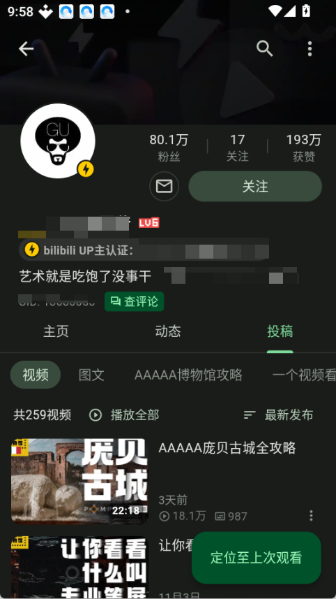 1.在首页或动态页面,找到你感兴趣的UP主。