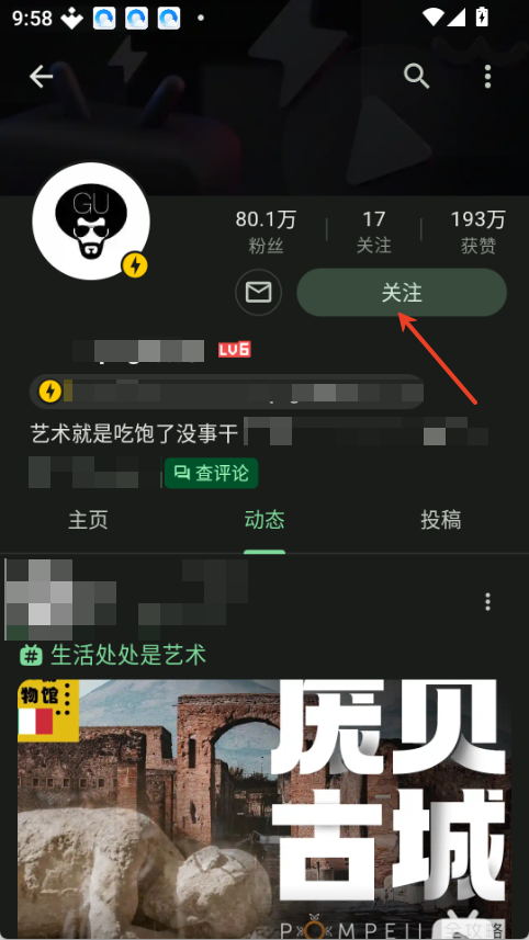 3.在个人主页中,点击“关注”按钮,就能关注这位UP主。