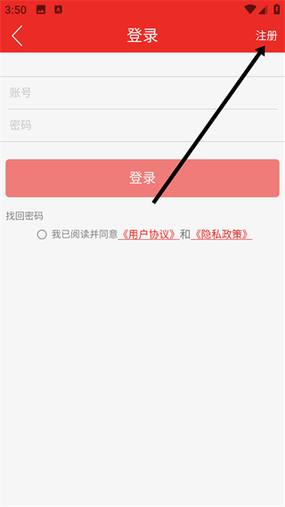 2、在登录页面点击右上角的【注册】按钮,即可进入新用户注册界面。