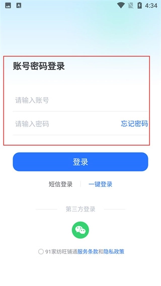 3、进入账号密码登录界面后,在【请输入账号】和【请输入密码】栏填写信息以完成登录,同时也可切换为其他登录方式。