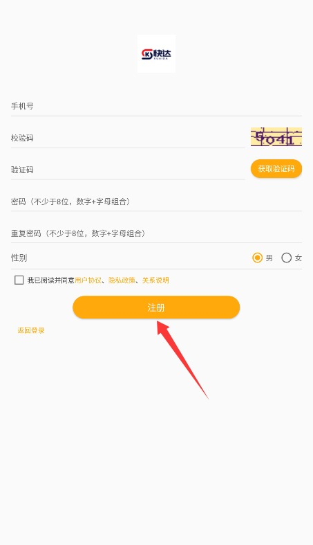 3注册时,需先输入手机号码以获取验证码,接着设定登录密码并选择性别,最后勾选同意相关协议即可完成注册流程。
