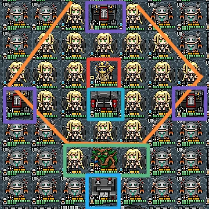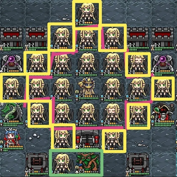 核心思路是让我方单位铺满整个陆地,这样敌方就会彻底失去发起进攻的可能,而法老王的作用则是专门负责被击破后产出金币。从理论层面来讲,这套策略能够实现无限循环的回合。