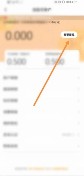 3、点击我要提现选项。