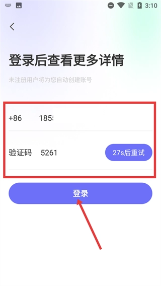 4、进入手机号登录页面后,依次填写手机号、获取并输入验证码,接着点击【登录】按钮,即可完成账号登录流程。