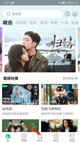 2、进入找片界面,选择右上角【放大镜】图标即可开始搜索。
