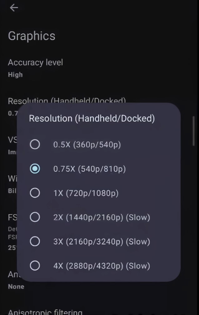 3、为了提升性能表现,分辨率建议一直保持在较低的0.75倍设置;要是您使用的是配置较低的手机,选择0.5倍会更合适。