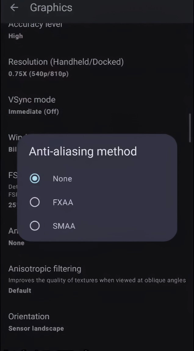 4、抗锯齿设置为None,各向异性过滤设置为default或auto。