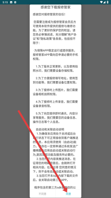 2进入软件后,会弹出服务协议,需仔细阅读软件提供的建议,然后点击同意并继续后续操作。