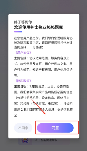1点击“同意”后即可进入应用,这里有海量题库和多样学习资源,能帮你轻松开启备考之路。