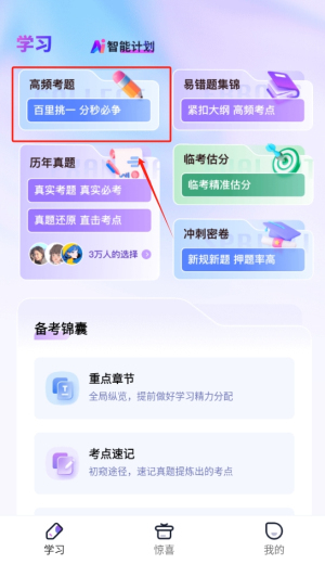 3、智能生成学习计划,结合学习进度进行实时跟踪,助力用户高效利用时间,更合理地安排复习,提高备考效率。