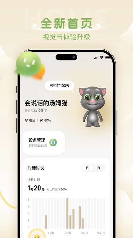 通过详细掌握设备状态来了解其运行情况,同时能够对日常互动过程以及相伴时长数据进行细致记录。